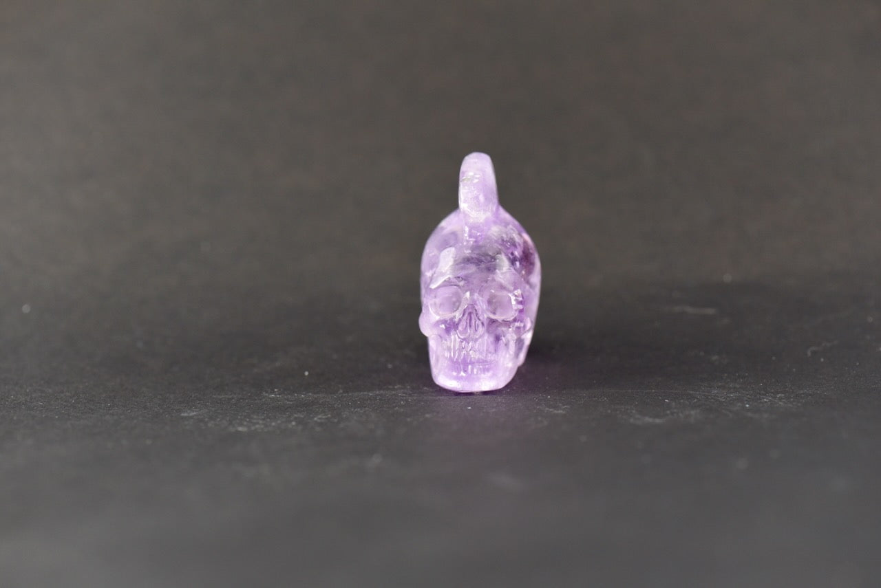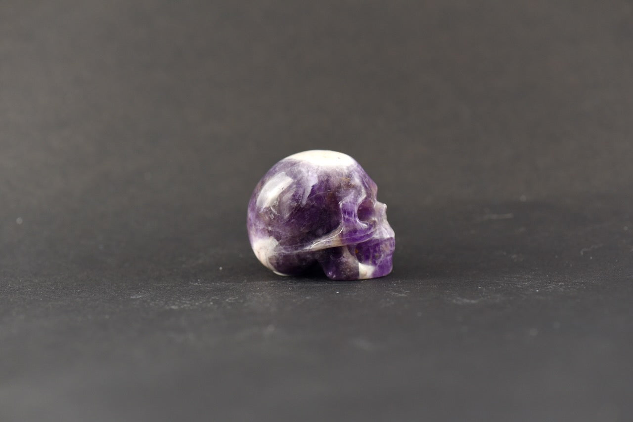 The Amethyst Skull radiates a deep, rich purple hue, with natural inclusions and crystal formations that enhance its mystical beauty. Known for its calming and protective properties, this skull embodies the energy of spiritual growth, intuition, and inner peace. The varying shades of purple may feature subtle lines or patterns, adding to its unique energy. It is believed to enhance meditation, promoting clarity and connection to higher realms while soothing emotional stress.