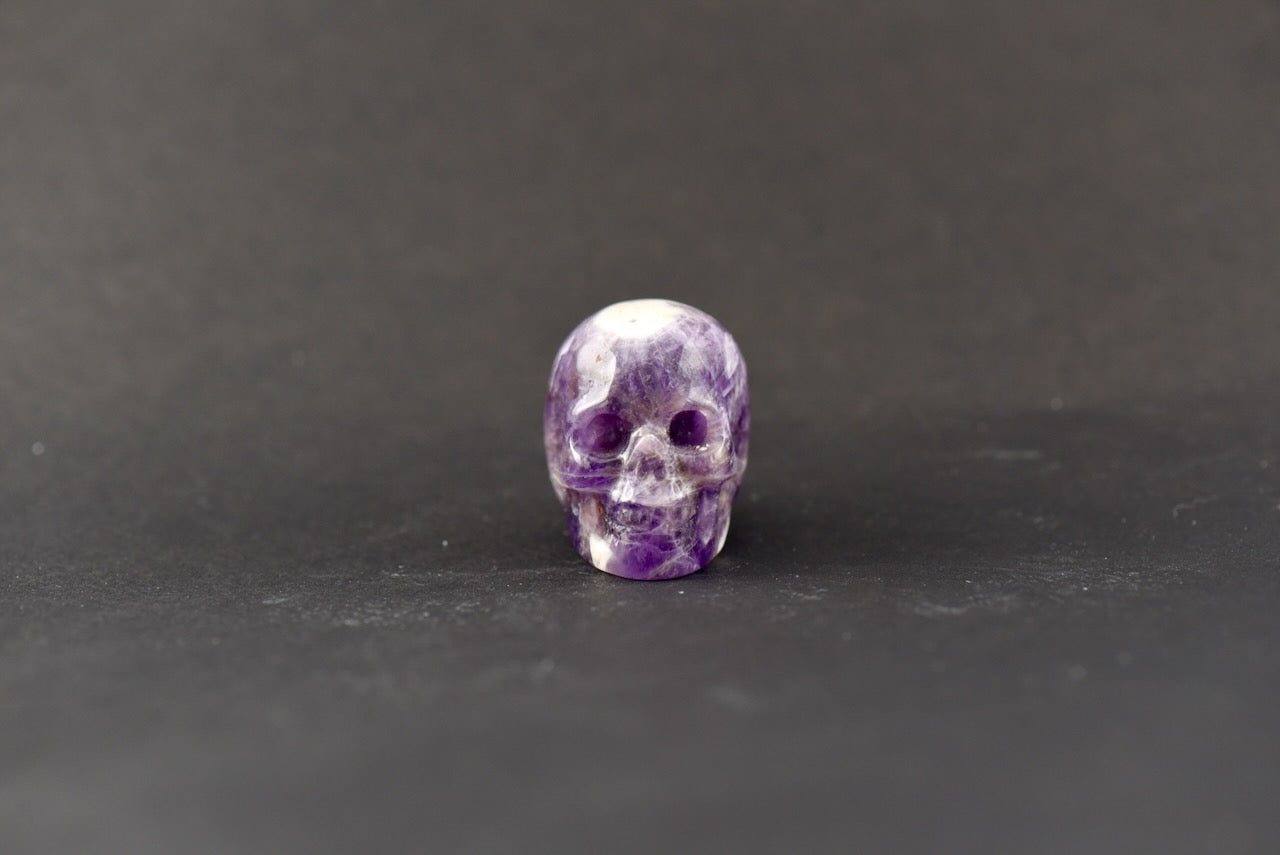 The Apatite Skull showcases a striking, translucent blue hue, radiating a soothing and expansive energy. Its vibrant color may feature natural inclusions and delicate striations, adding character and depth. This skull is known for promoting clarity of thought, communication, and spiritual awakening, making it a powerful ally for those seeking mental focus and emotional balance. Its cool, calming presence invites introspection and enhances one's connection to higher consciousness.