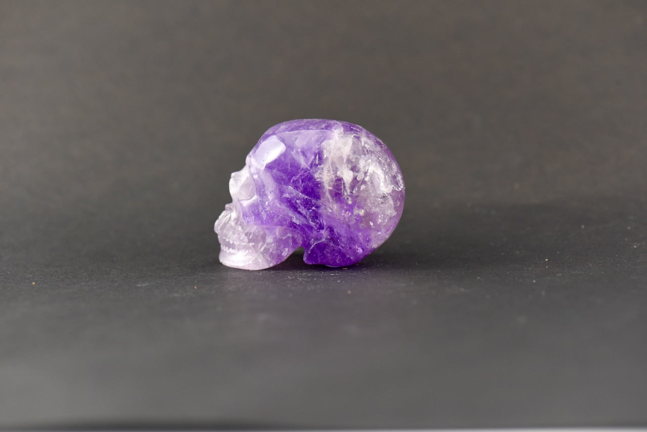 This petite Amethyst Skull emanates a serene, high-frequency energy through its vibrant violet hues. Amethyst is revered as a stone of spiritual protection, purification, and inner wisdom. It gently quiets mental chatter, supports emotional balance, and opens the gateway to deeper states of meditation and intuition. This skull serves as a subtle yet potent ally for those seeking clarity, calm, and connection to higher guidance. Whether placed on an altar or used in energy work, its presence invites peace, insight, and spiritual attunement.