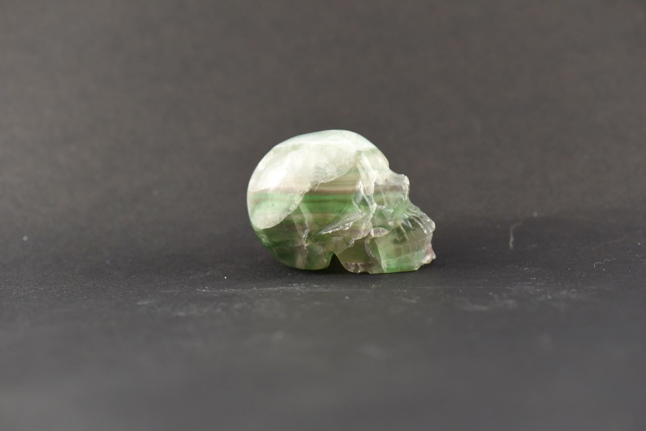 The Green Fluorite Skull showcases soft to vibrant green tones with natural banding and translucent layers that reflect light beautifully. Known for its cleansing and harmonizing properties, it carries a refreshing energy that promotes mental clarity, focus, and heart healing. Inclusions and subtle shifts in color add depth and uniqueness to each piece. This skull serves as a gentle guide for emotional balance, decision-making, and energetic renewal.